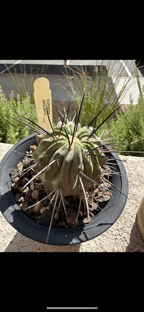 Copiapoa dealbata is a rare Chilean Atecama desert cactus, watered only by the “Camanchanca”-desert fog-in the wild, resulting in an insanely slow growth rate. This plant is probably around 6 or 7 years old.